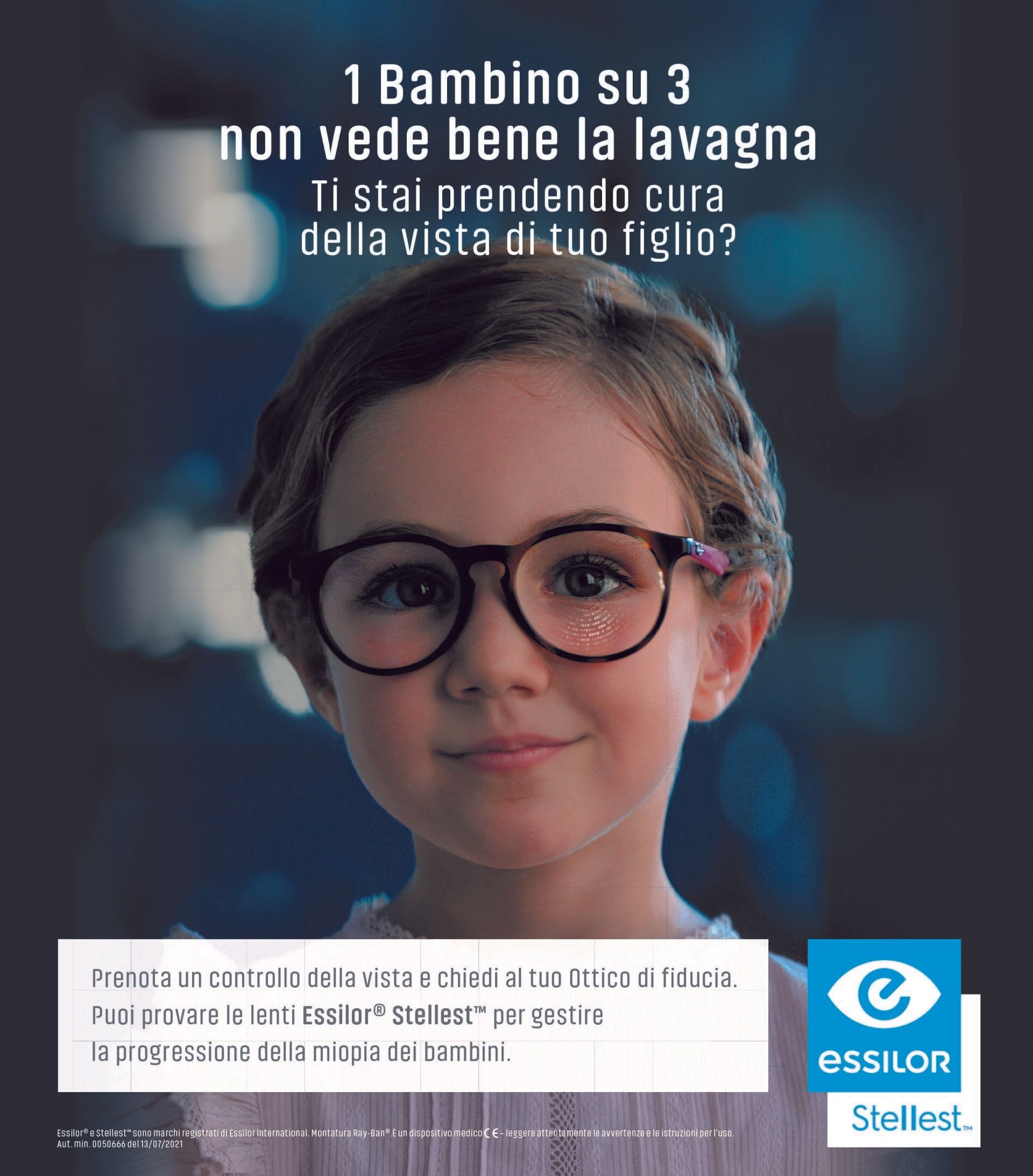 Un'altra domanda che noi facciamo sempre ai genitori riguarda la frequenza dei controlli richiesta dall'oculista, e se ha dato indicazioni specifiche in merito alle lenti, soprattutto se il bambino è miope. Ci sono oggi metodiche non invasive, attraverso lenti per occhiali costruite ad hoc con innovative tecnologie, per rallentare la progressione miopica fino al 67%.